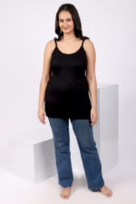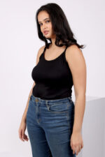 This black cotton camisole for women is crafted from super-combed ribbed cotton that feels gentle on the skin. With its regular fit, sleeveless design, and stretchable comfort, it’s ideal for every occasion—layer it under jackets, pair it with jeans, or wear it solo while lounging at home.