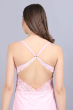 This pink lace babydoll dress is the perfect mix of feminine and flirty. Featuring delicate floral lace along the neckline, criss-cross back straps, and breathable mesh fabric, it ensures a graceful fit for Indian body types.